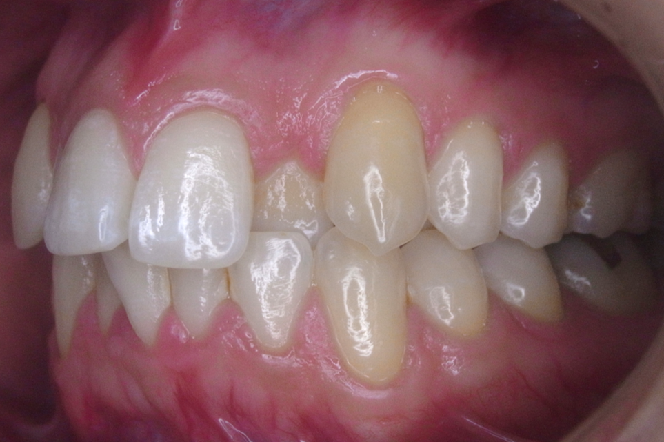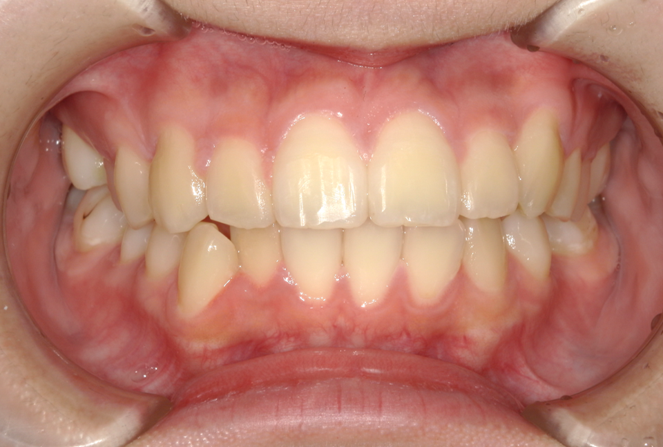 | 診断名・主な症状 | 上顎側切歯が引っ込んでクロスバイトになっている。 下顎前歯も傾斜、ねん転している。 |